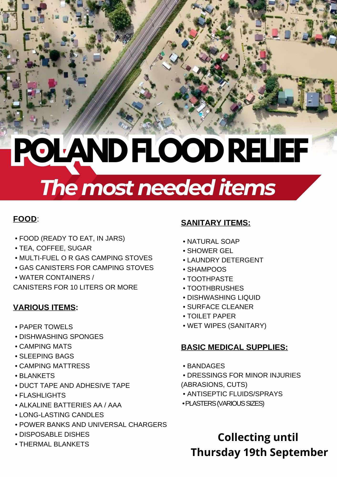 Please, bring the items to the reception of the Priory (9.00 am – 6.00 pm) by Thursday, 19th September,